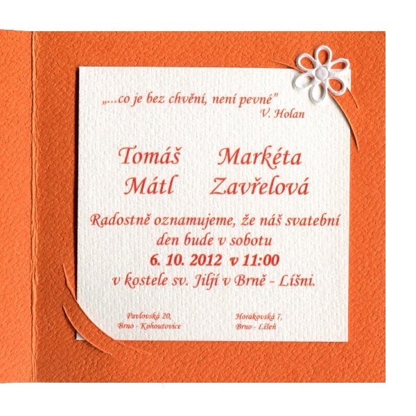 S radostí oznamujeme, že náš svatební den bude v sobotu, 6. 10. 2012 v 11:00